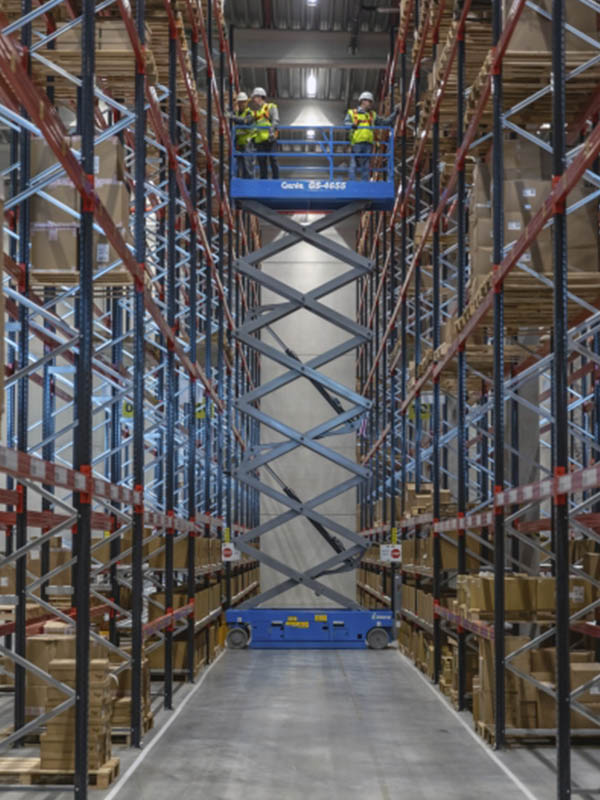 The Genie® GS™-4655 E-Drive slab scissor lift is a robust and eco-friendly machine engineered with the state-of-the-art Genie AC electric E-Drive system, for unmatched performance and runtime in high indoor and outdoor jobsites requiring a significant amount of driving. It offers operators an excellent combination of working height and lifting capacity capabilities with powerful electric AC drive motors to maximize jobsite productivity.