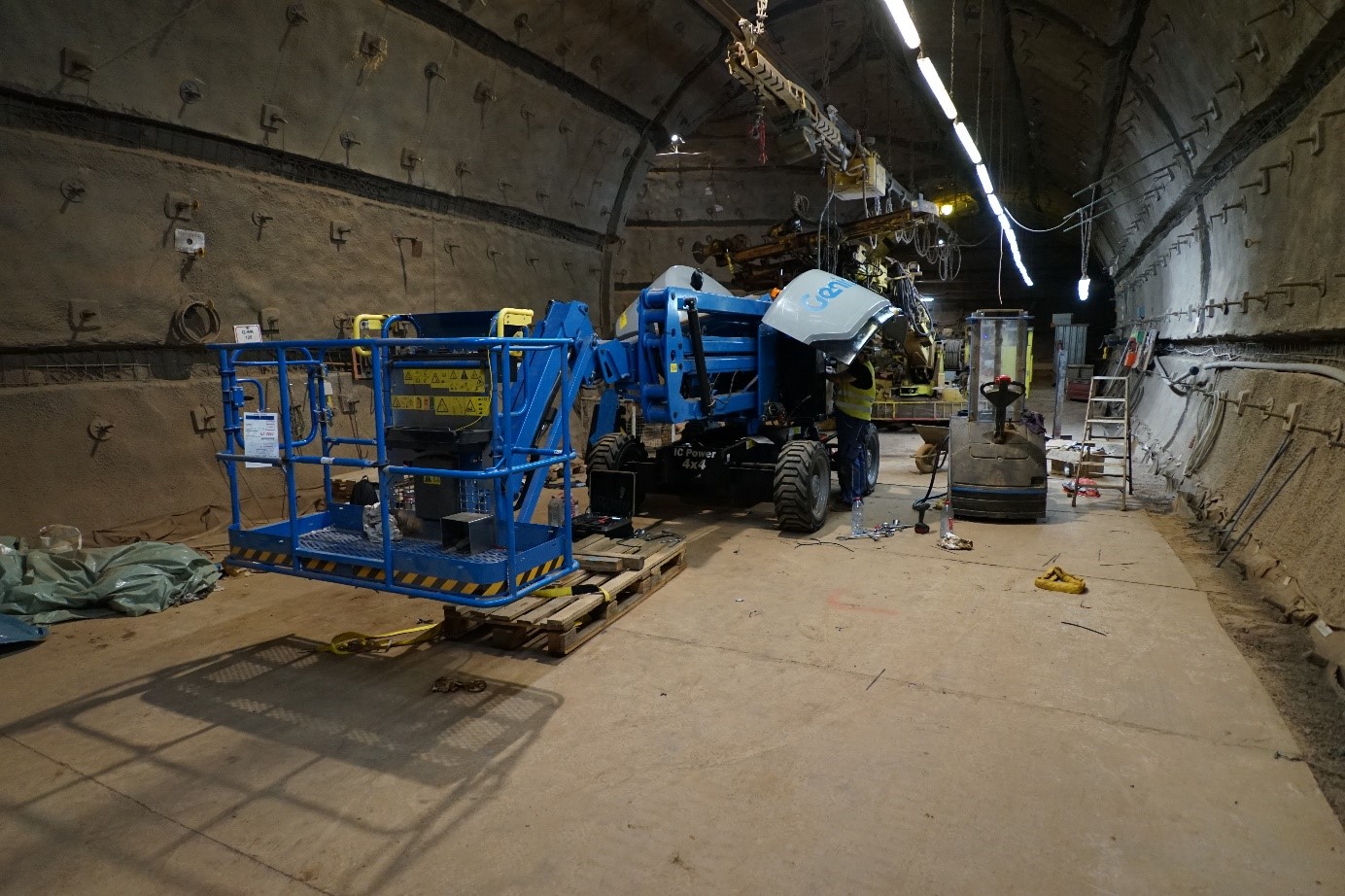 Genie Z® Xtra Capacity™ (XC™) boom lift goes 1,000 m (3,280 ft) underground.